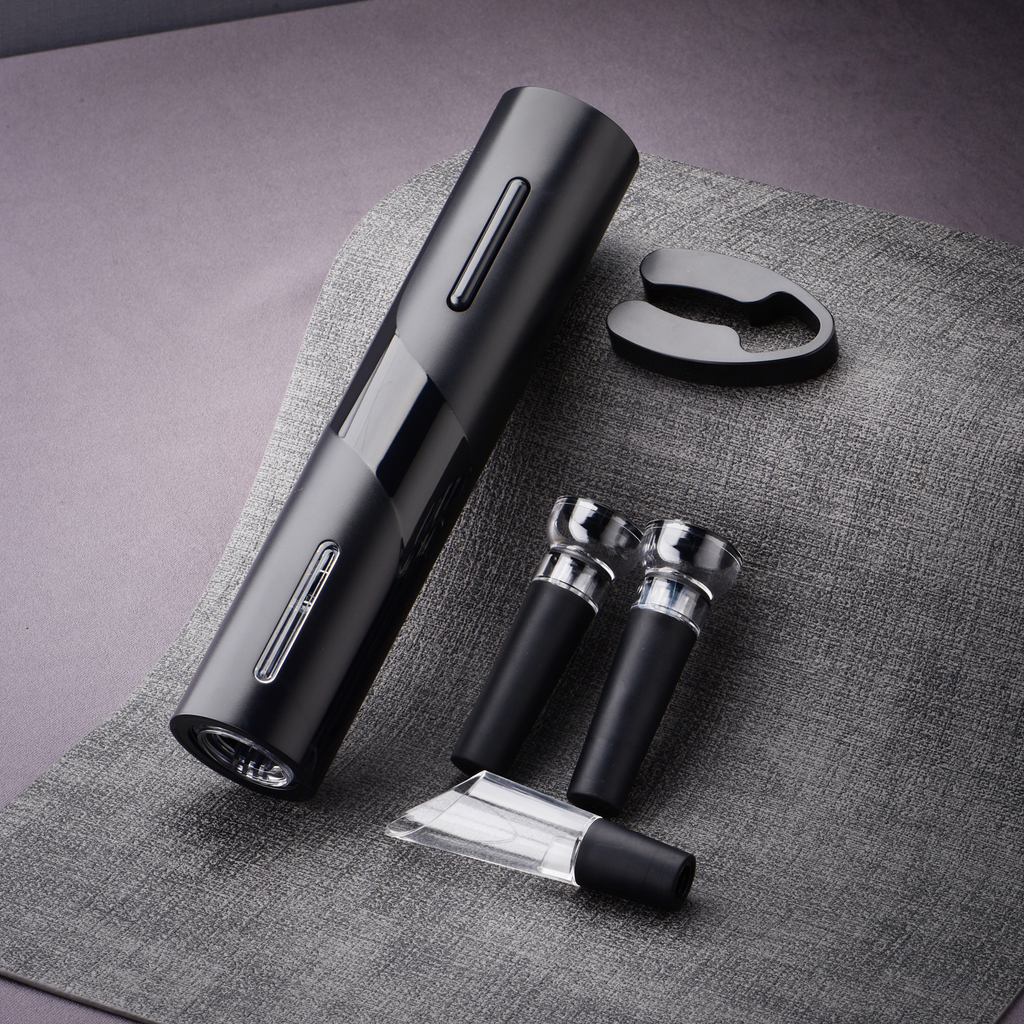 Funciona com 4 pilhas AA, basta apertar um botão para remover a rolha. Bomba a vácuo que elimina o ar da garrafa, mantendo as propriedades do vinho por mais tempo.